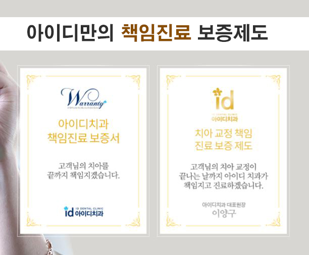 아이디치과만의 책임진료 보증서를 발부해드리고 있습니다.