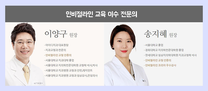 인비절라인 투명교정은 특히 교육을 이수받은 전문의가