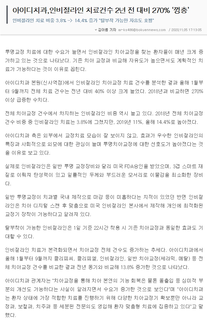 투명교정의 끝판왕, 인비절라인id병원치과, 아이디치과