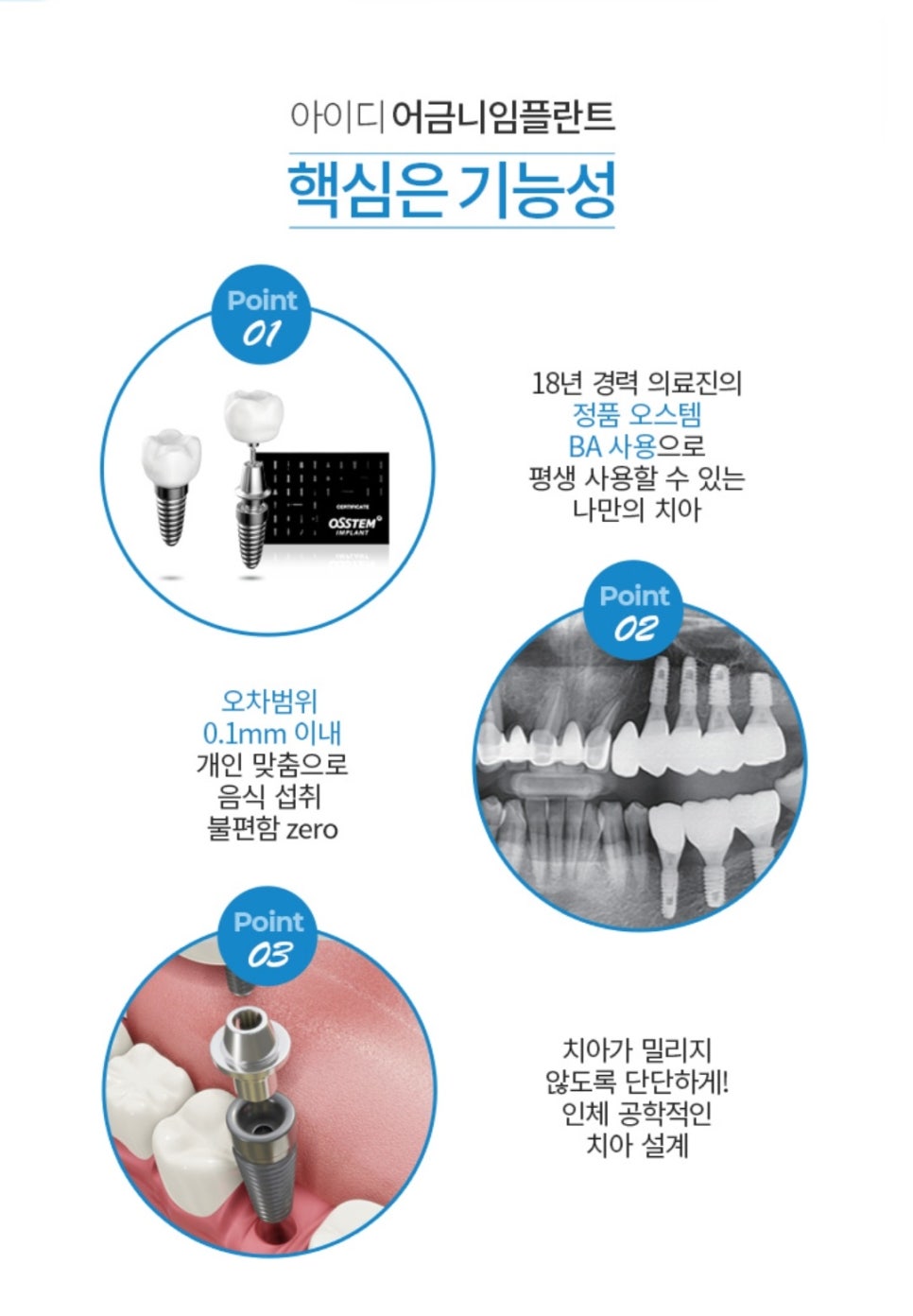 | 구분 | 앞니 임플란트 | 어금니 임플란트 |