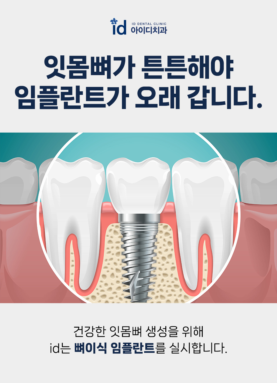 여기까지 환자분들의 부담을 덜어드릴 수 있는 뼈이식임플란트의 다른 방법에 대해, 저희 아이디치과에서 보다 더 자세하게 알려드렸는데요.