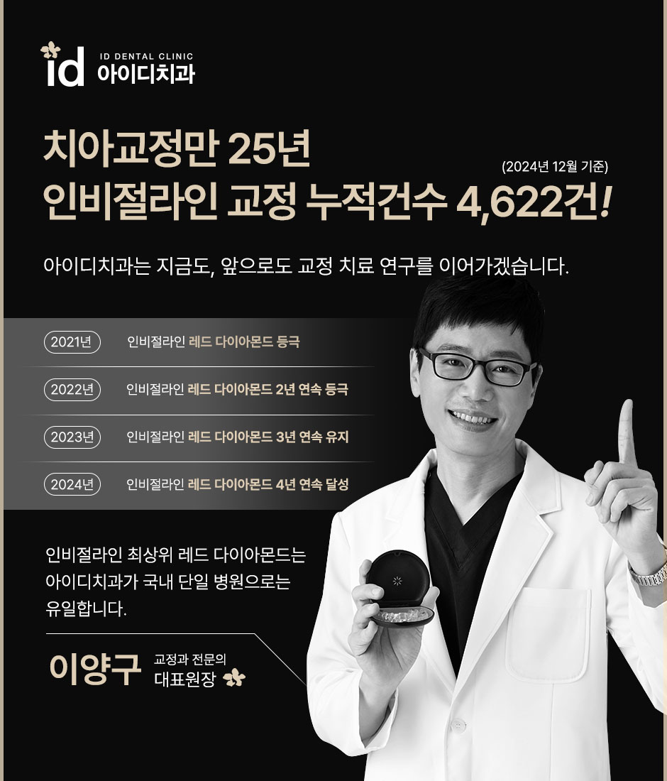 그리고 아이디치과는 국내 최초로 레드 다이아몬드를 받은 곳이기도 하죠^^ (2021년 기준)