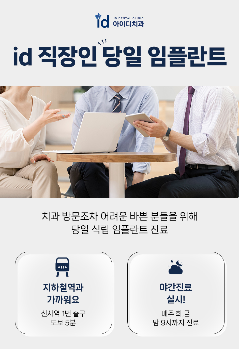 특히 시간 여유가 없는 직장인 분들을 대상으로 야간 진료부터 빠른 원데이 임플란트까지 도와드리고 있습니다.