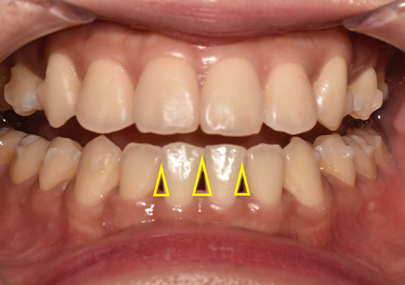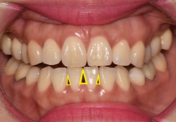 가장 첫 번째로, 블랙 트라이앵글 현상이 이미 보이는 치아라면