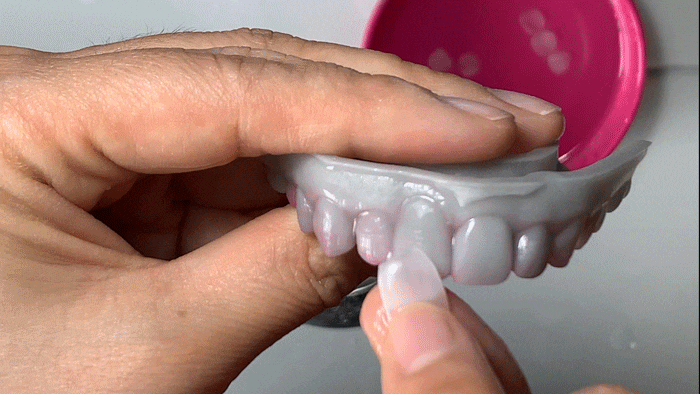 손상을 적게 하려면 보철물을 아주 얇게 만들어야 하는데, 그러면서도 깨지지 않게 오래갈 수 있는 강도를 구현해야 했어요.