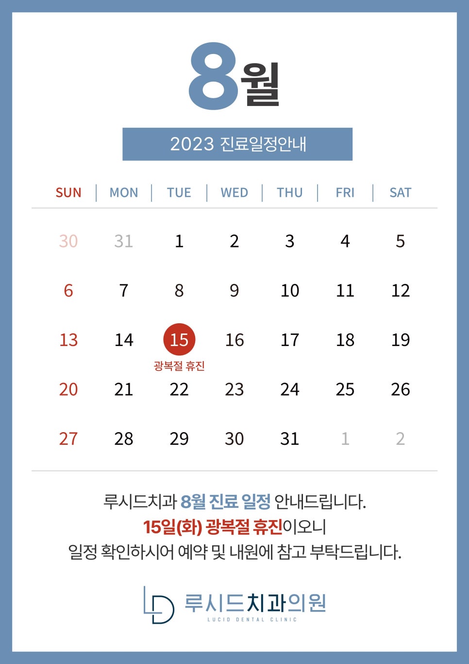 8월 휴진 일정 안내입니다