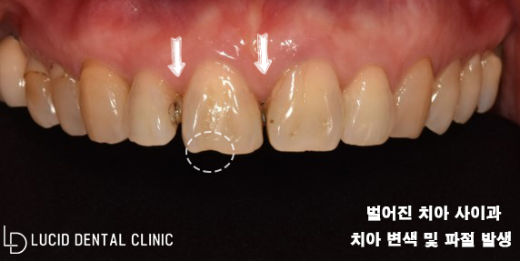 화살표 표시 - 정중이개 (치아 벌어짐)