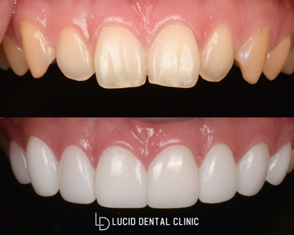 논현동 치과 치아 벌어지고, 변색한 치아 루시네이트 수복 증례
