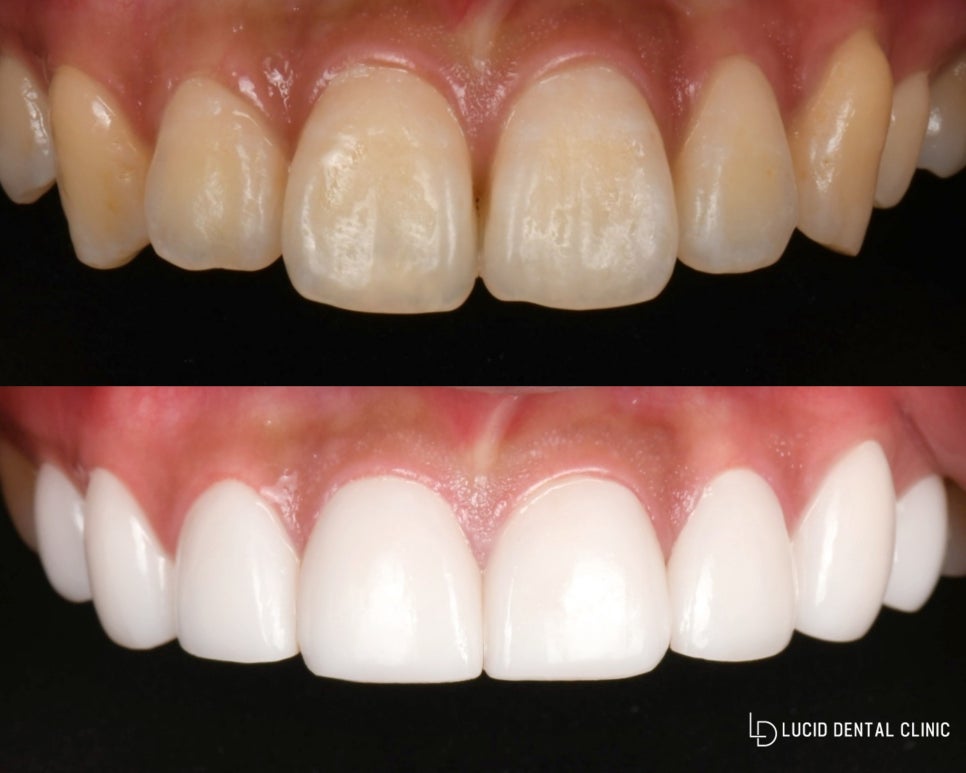 "치아 색이 누렇게 변했어요." 강남역 치과 에서 루시네이트 당일 수복으로 자신감 찾아드렸습니다.