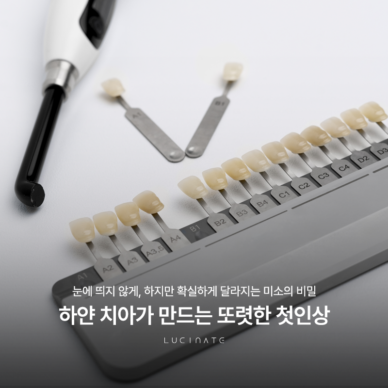 안녕하세요. 루시드치과입니다. 처음 사람을 만날 때, 얼굴보다 먼저 들어오는 인상이 있어요. 바로 '미소'예요. 그리고 그 미소를 구성하는 중요한 요소 중 하나가 바로 치아의 색이에요. 치아가 희고 깨끗하면 인상이 훨씬 깔끔해 보이고, 말 한마디 없이도 신뢰감을 줄 수 있어요. 반면, 아무리 가지런하고 건강한...