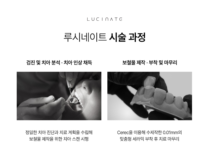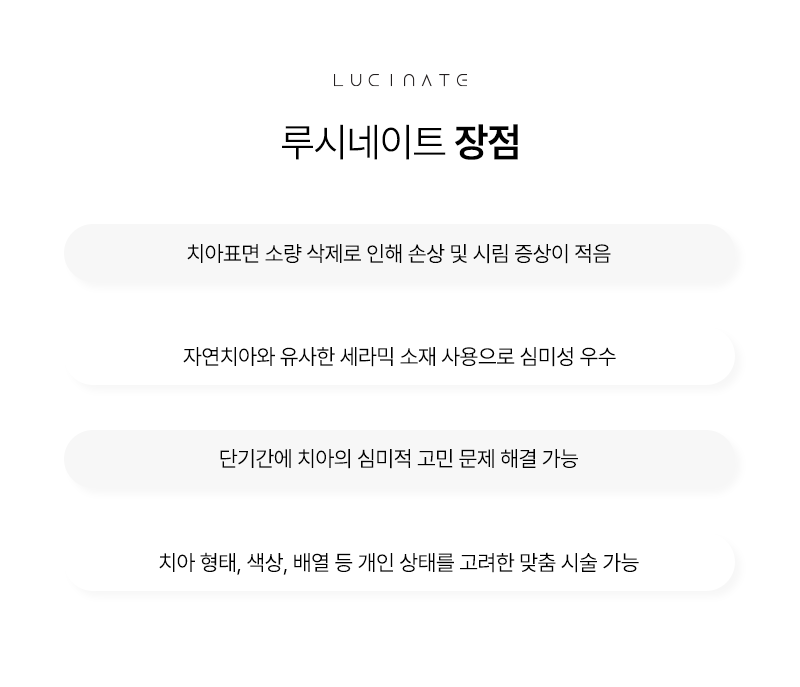 루시네이트는 치아 바깥 면에 얇은 세라믹 소제를