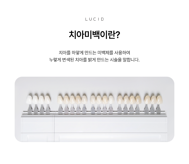 안녕하세요. 루시드치과입니다. 하얀 치아는 누구나 원하지만, 누구나 갖지 못하는 것 중 하나입니다. 광고 속 모델처럼 빛나는 미소를 보며 '나도 저 정도는 됐으면..' 생각해 보셨다면, 이미 치아 색에 대한 불만이 쌓여 있다는 뜻이에요. 양치를 아무리 열심히 해도, 좋은 치약을 써봐도 치아는 점점 누렇게 변해갑...