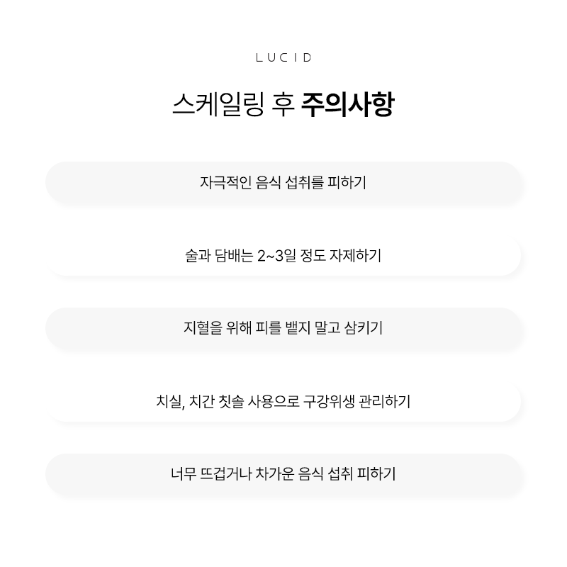 스케일링을 마친 후에도 몇 가지 주의할 점이 있어요.