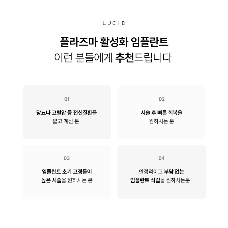 따라서 플라즈마 활성화 임플란트가 반드시 모든 사람에게 필요하거나 정답인 것은 아니며, 환자 개개인의 상태에 맞는 임플란트 선택이 중요합니다.