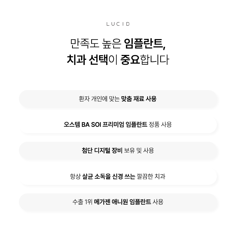 루시드치과는 환자분의 구강 상태와 전신 건강을 종합적으로 고려하여 치료 방법을 제안 드리고 있습니다.