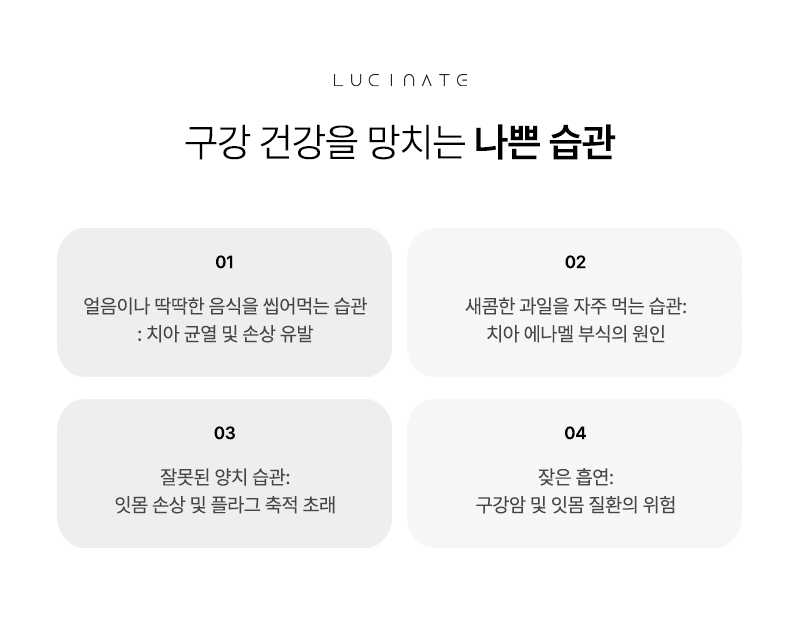 충치, 잇몸 문제, 교정이 필요한 부정교합 등으로