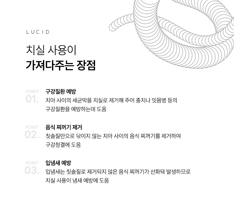 칫솔만으로는 관리가 어렵기 때문에 치실이 필수입니다.