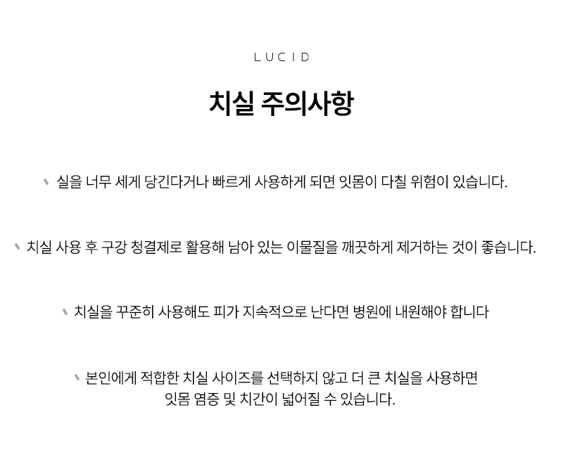 ▪️실을 너무 세게 당기거나 빠르게 움직이면 잇몸이 다칠 수 있습니다.