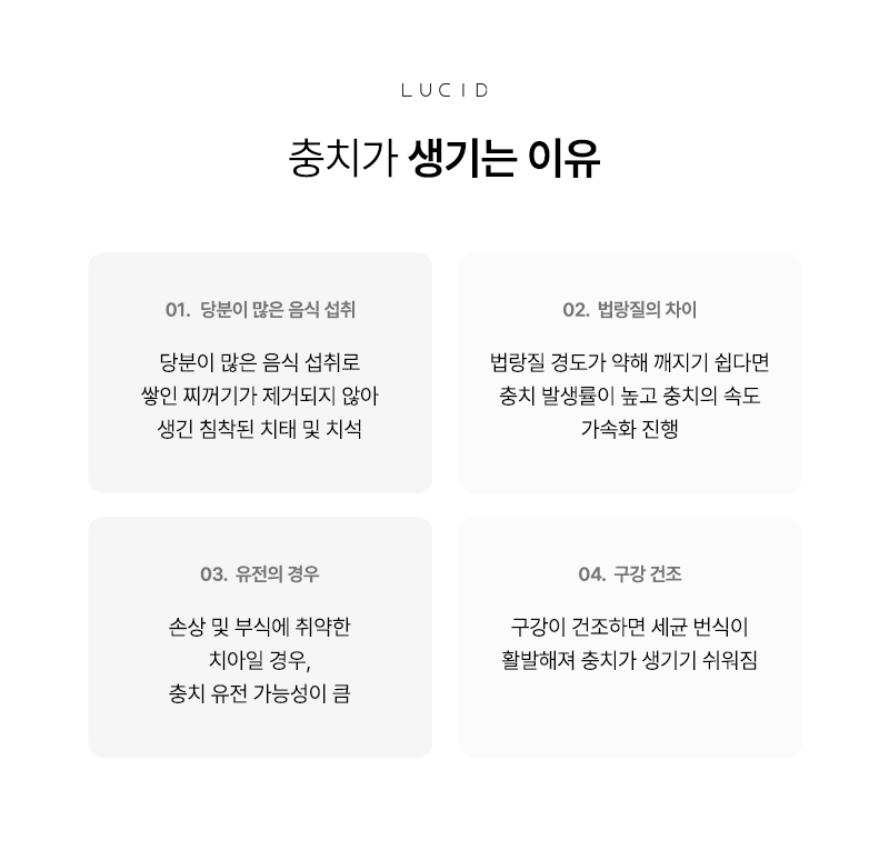 충치는 단순히 양치를 하지 않아서 생기는 것만은 아닙니다. 여러 가지 요인이 함께 작용하면서 발생할 수 있습니다.