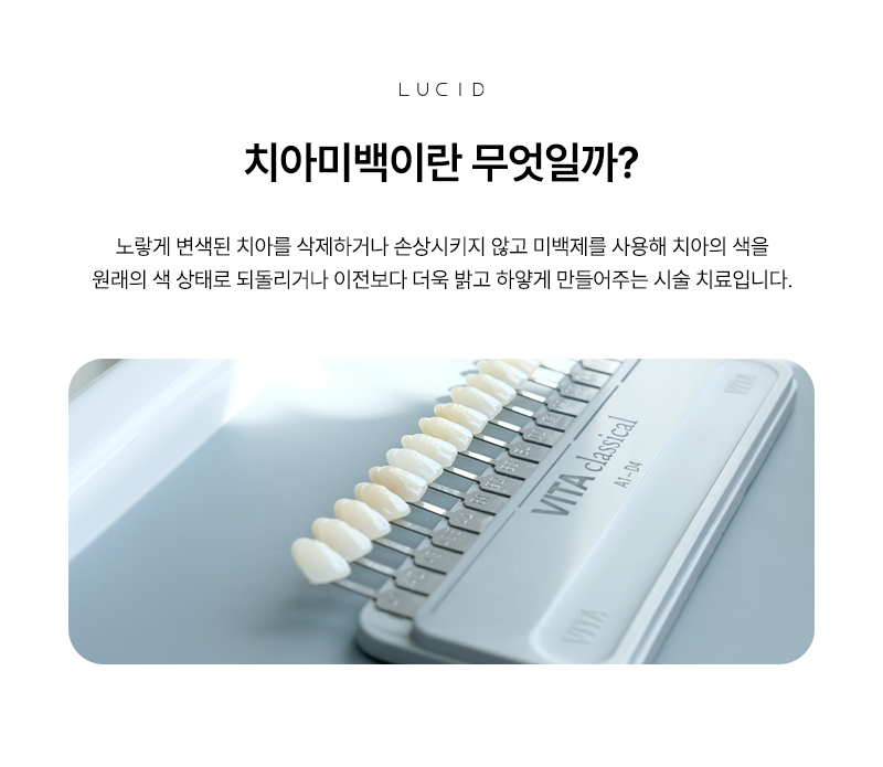 루시드치과에서는 단순히 하얗게 만드는 미백이 아니라 자연스럽고 조화로운 색감을 중요하게 생각합니다.