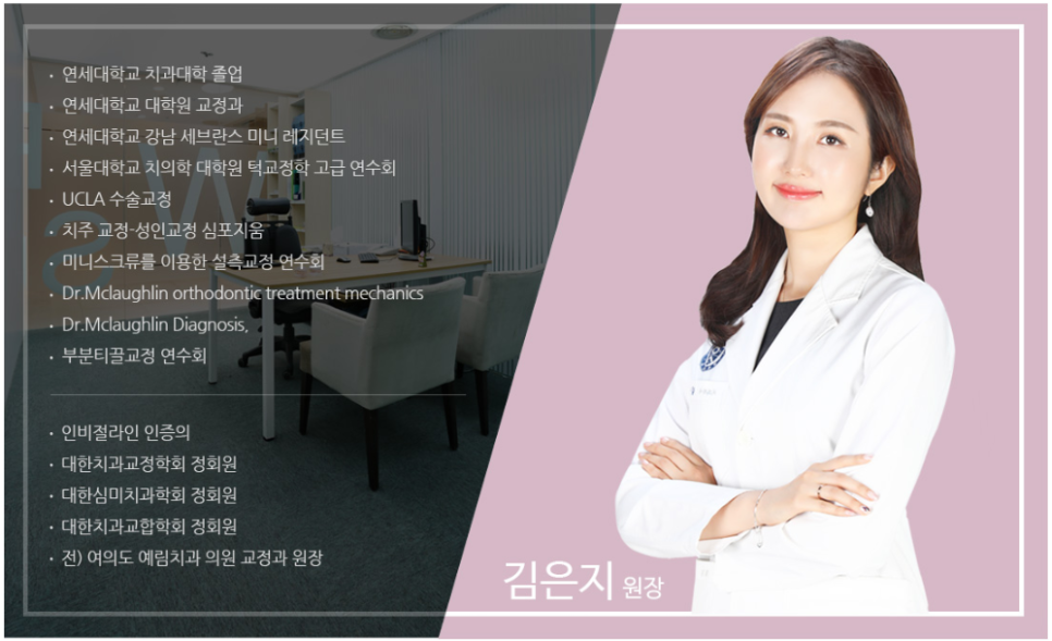 저희 원장님은요, 10년이상의 경력을 갖고 계시고~, 전문의이시구요, 교정과 전공하시고, 구강내과 박사과정중이십니다.
