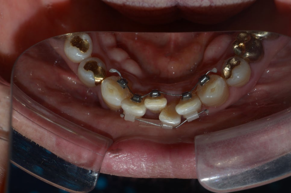 이런 경우를 위해서 아래 앞니를 안쪽으로 간단하게 교정할수 있는 티끌 장치가 있는데요