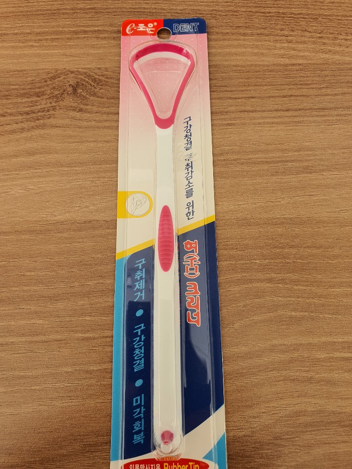 아침에 자고 일어나서 혀 크리너로 혀를 닦아 주시는 것입니다.