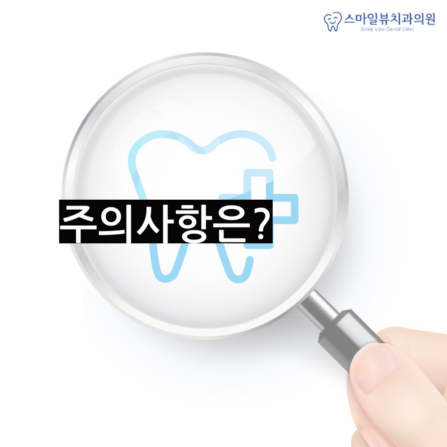 스마일뷰에서는 이러한 주의사항을 꼭 지킬 수 있도록 안내하고 있으며 근본적으로 충치 예방을 위해 정기적인 방문과 스케일링을 하는 것을 권장합니다. 치석과 치태는 우식증을 유발하기 때문에 주기적으로 제거해주는 것이 좋습니다. 평소에 당분이 많이 함유된 간식이나 음식을 섭취했다면 꼭 구강 청결관리에 더욱 신경을 쓰시길 바랍니다. 잔여 된 당 성분이 치아에 달라붙어 법랑질뿐만 아니라 상아질, 치수까지 영향을 끼칠 수 있어 주의하시길 바랍니다.