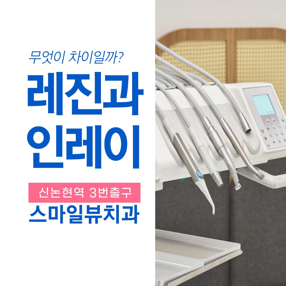 안녕하세요 오늘 스마일뷰치과에서 알려드릴 정보는 레진과 인레이의 차이점 입니다. 충치 검진하고 나면 보통은 레진이나 인레이 치료를 권유받게 되는데요 이 두가지의 차이점을 궁금해 하시는 분들이 많으십니다. 우선 인레이는 본을 떠서 제작을 하는 것이기 때문에, 더 큰 범위의 치료를 할 수 있구요, 치아...