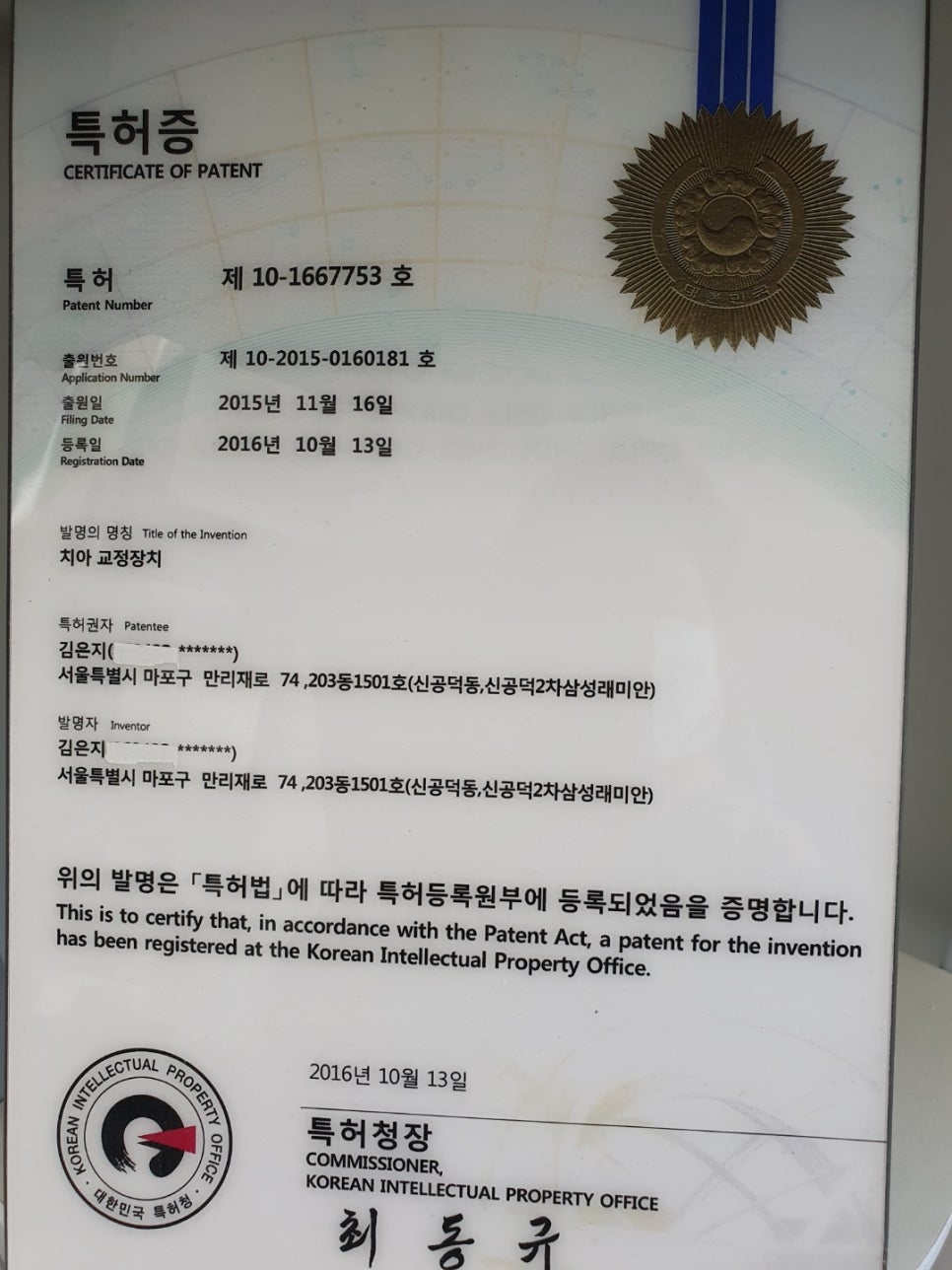 항상 환자분들을 위해 노력하는 김은지 대표 원장님께서 특허까지 내셨답니다.