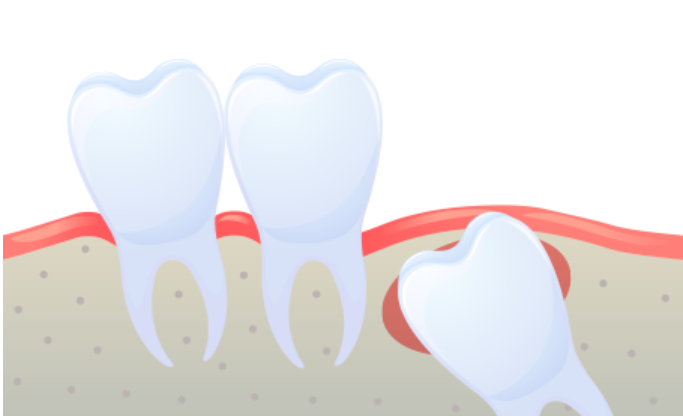 사랑니가 누워서 나있는 경우 사랑니가 구강내에 올라올 자리가 없으므로 치관만 비스듬이 솟아오른 경우로 이 경우 대부분 음식물이 잇사이에 축적되어 염증이 생기기 쉽죠.