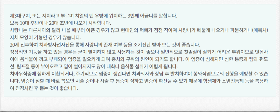 사랑니 발치에 대한 것입니다.
