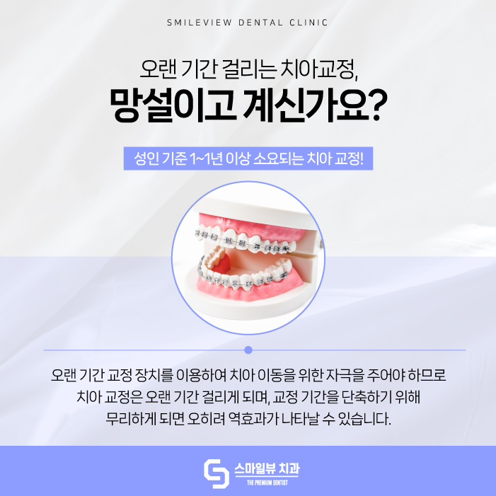 교정 기간을 단축하기 위해 무리하게 되면 오히려 역효과를 나타내기에 신중하게 선택하는 것이 좋아요.