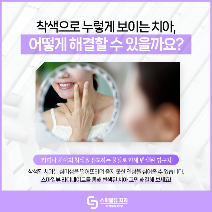 이렇게 착색된 치아는 심미성을 떨어뜨리기에 충분한 요소가 될 수 있어요.