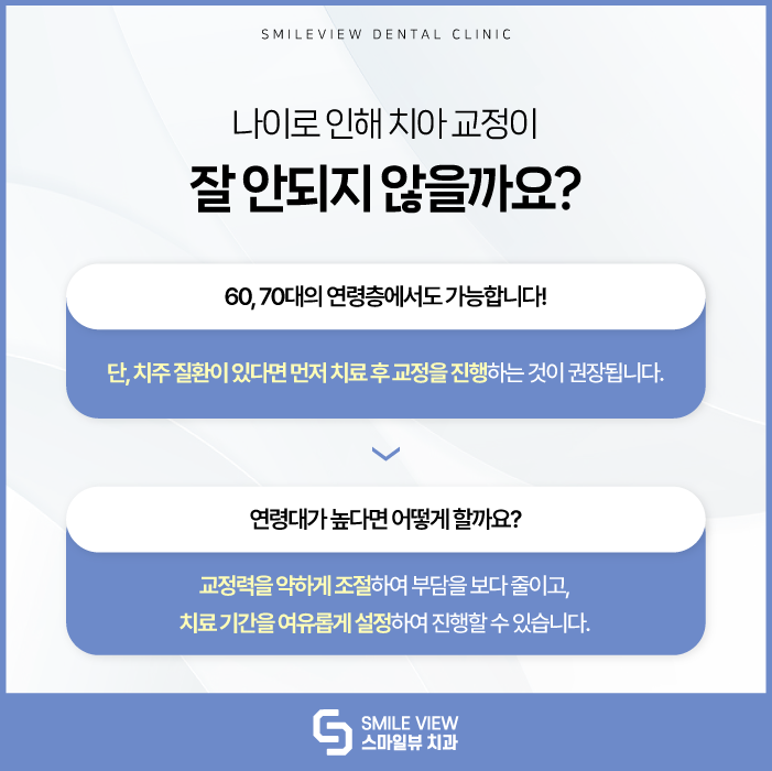 연령 자체가 치열을 바로잡는 과정의 직접적인 제한 요소는 아니며, 다만 중장년층은 상대적으로 잇몸과 치조골 건강이 저하될 수 있는데요.