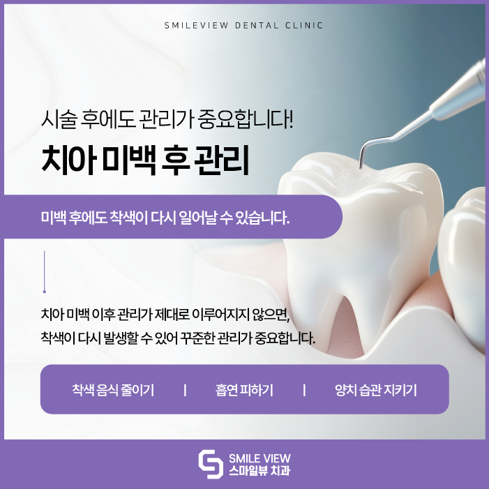 흡연은 착색의 주요 원인 중 하나로, 미백 후 흡연을 지속하면 색이 빠르게 다시 변할 수 있습니다.