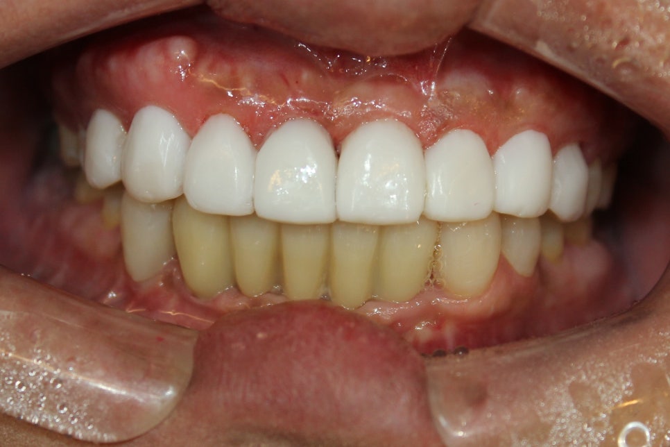 20대후반 여성 환자분으로 상악 앞니 8개를 레진 비니어하셨는데요.